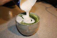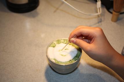 4. Pour whisked milk into 1. the macha slowly to pay attention not to distinguish whisk.