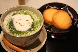maccha latte (thickened powdered green tea latte)
